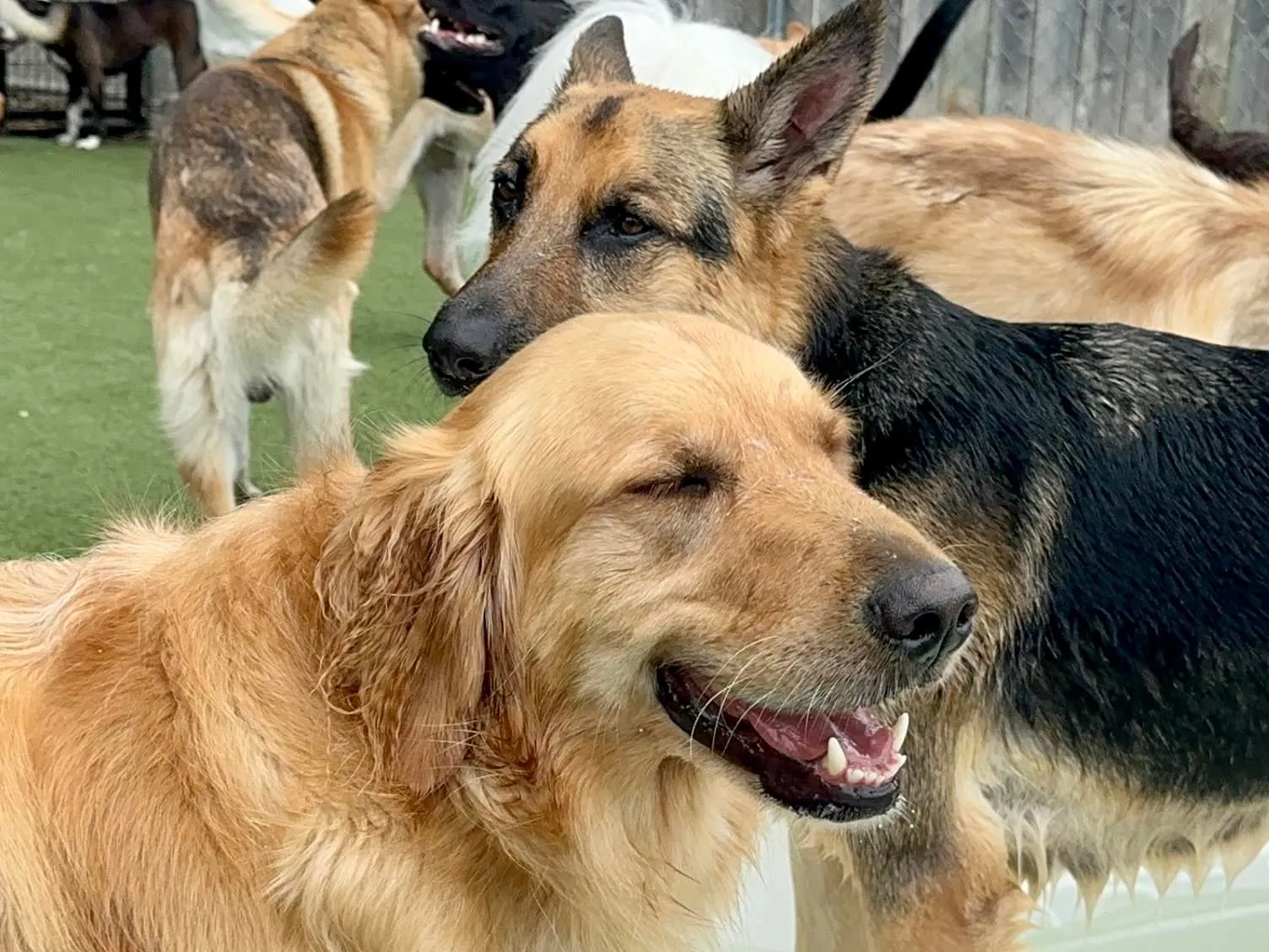 It depends on your dog’s personality. Many seniors love social interaction. We group pets by activity level, so a larger, older dog will be with similarly mellow playmates. Our temperament evaluations help ensure a good fit. Staff monitor behavior and will move a dog to a calmer area if they seem overwhelmed or tired. We also offer private daycare—often ideal for older or more relaxed dogs.
